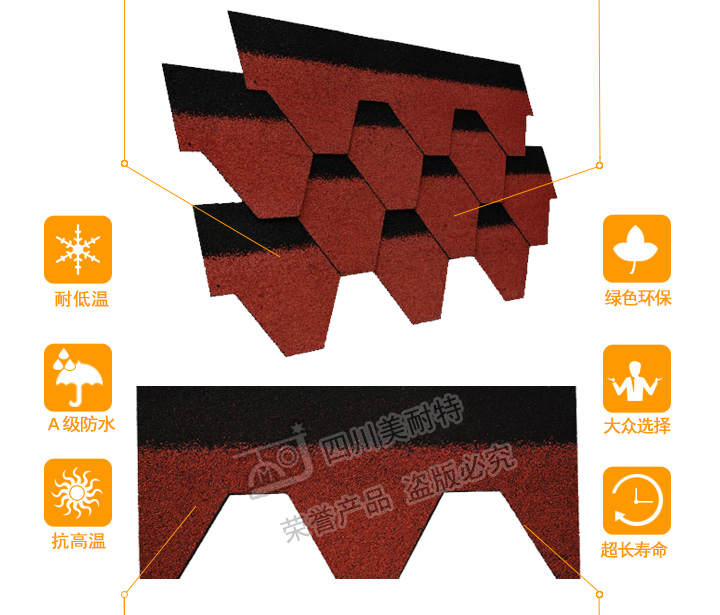 产品名称:马赛克型 产品规格:单层 产品颜色:亚洲红 长度(mm):1000mm±3 mm 包装:每包21片