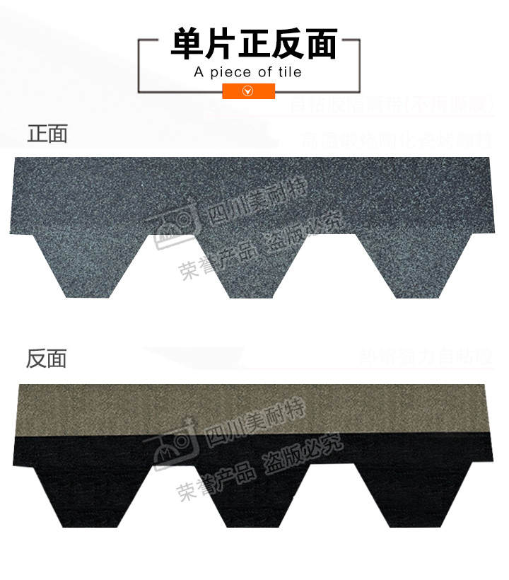 宽度(mm):320mm 厚度(mm): 2.6mm 重量(kg/m2):每包21KG±1KG 每平方米所需瓦片(片):6.8片