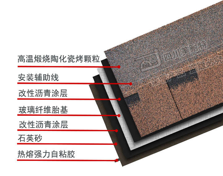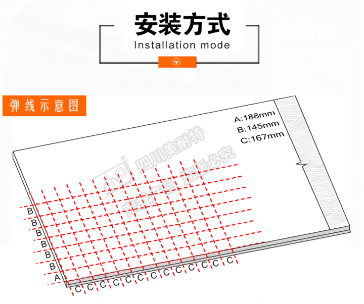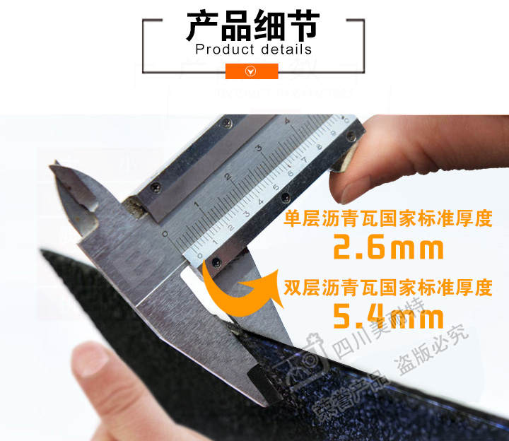 宽度(mm):340mm 厚度(mm): 5.2mm 重量(kg/m2):每包28KG±1KG 每平方米所需瓦片(片):6.8片