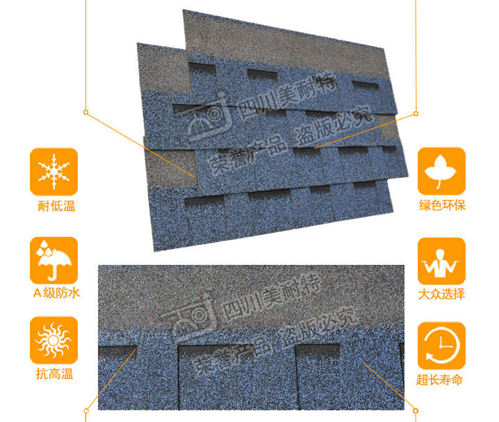 宽度(mm):340mm 厚度(mm): 5.2mm 重量(kg/m2):每包28KG±1KG 每平方米所需瓦片(片):6.8片