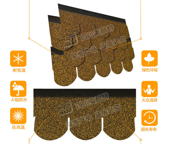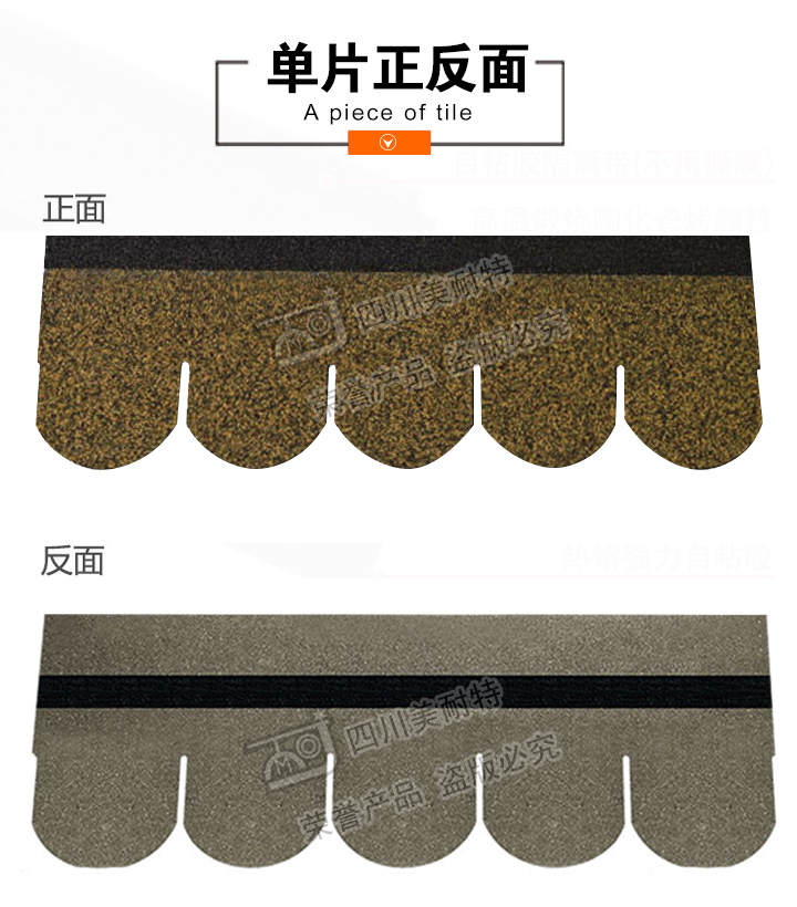 产品名称:鱼鳞型 产品规格:单层 产品颜色:沙漠金 长度(mm):1000mm±3 mm 包装:每包21片